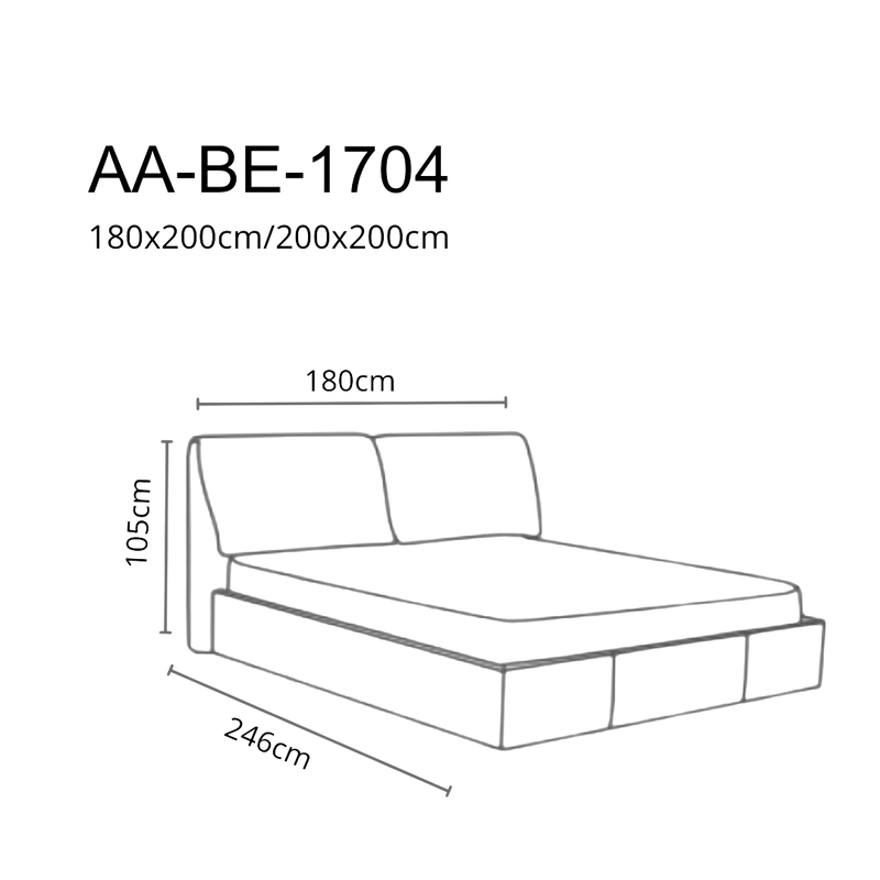 King Bed: Frame 210x232x108 cm, mattress 180x200 cm