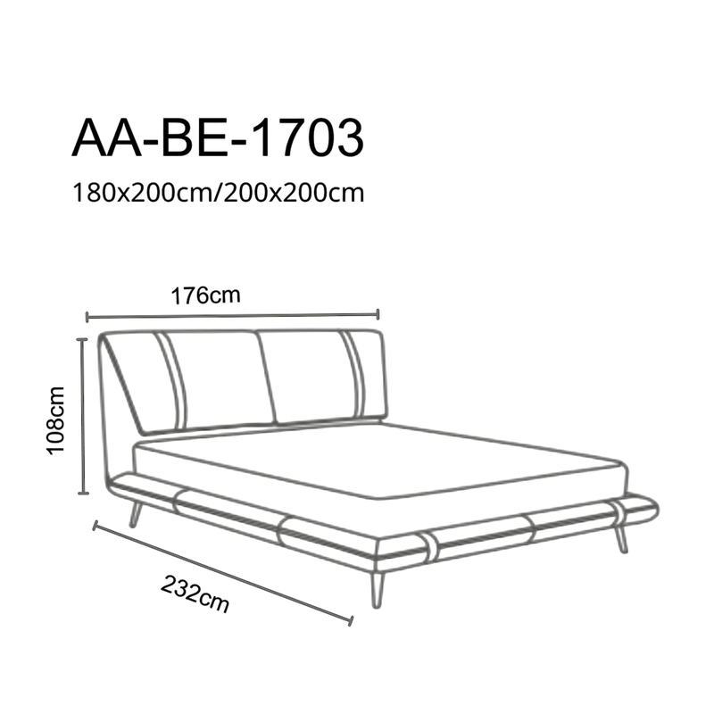 Queen Bed: Frame 176x232x108 cm, mattress 150x200 cm