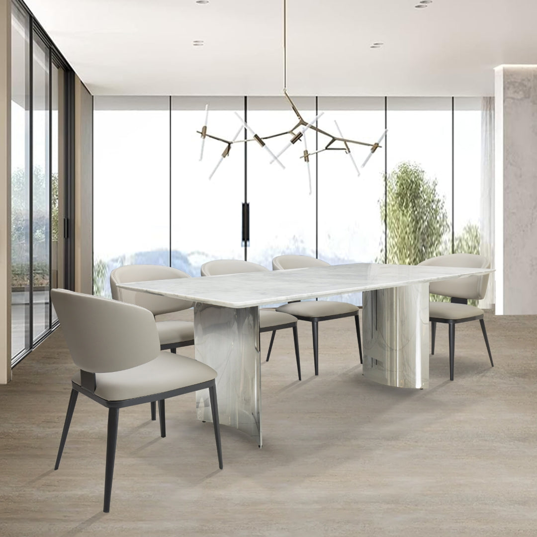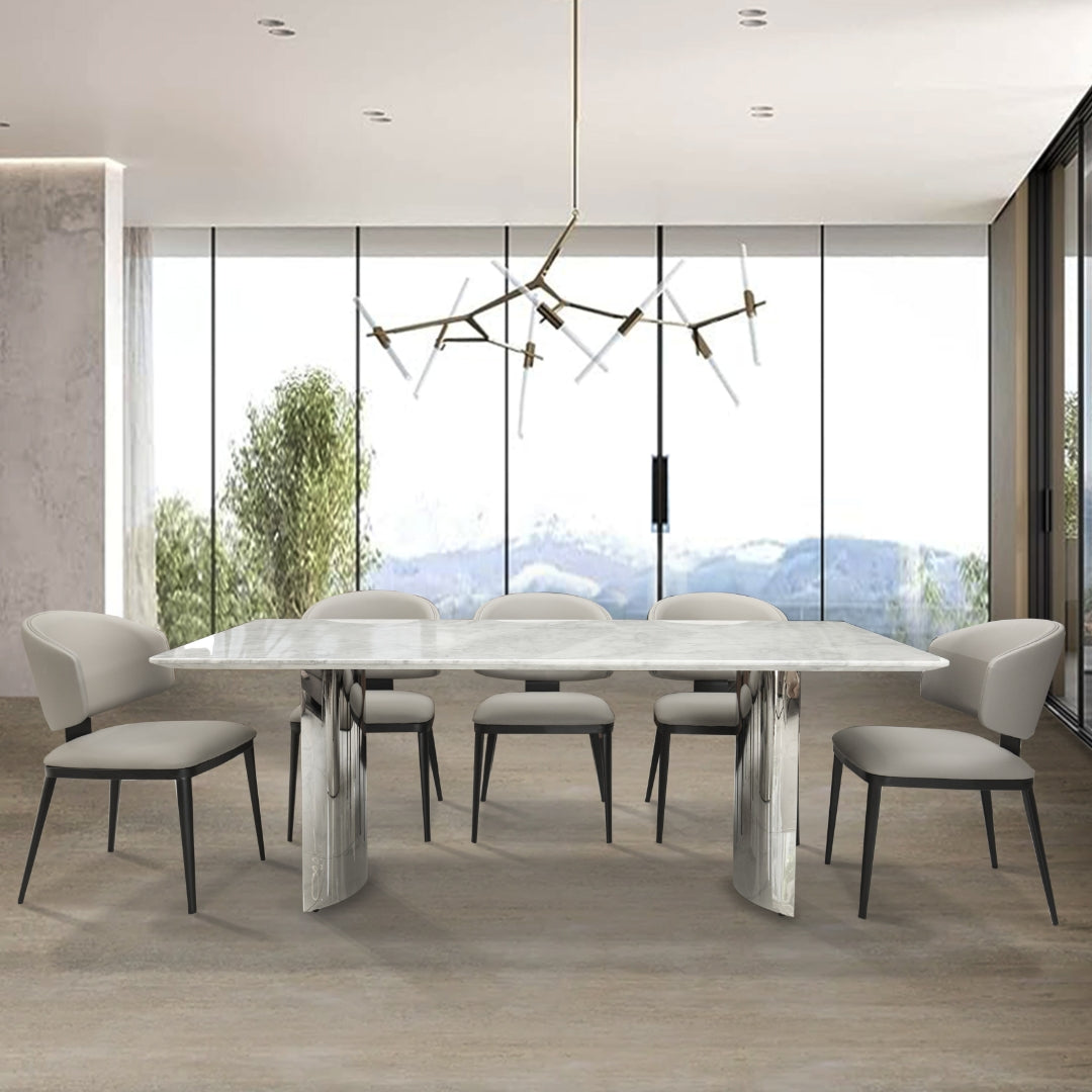 Elevate your dining space with our stunning collection of dining tables, crafted from high-quality materials such as premium marble. The natural marble veining adds a unique touch of elegance to each piece.