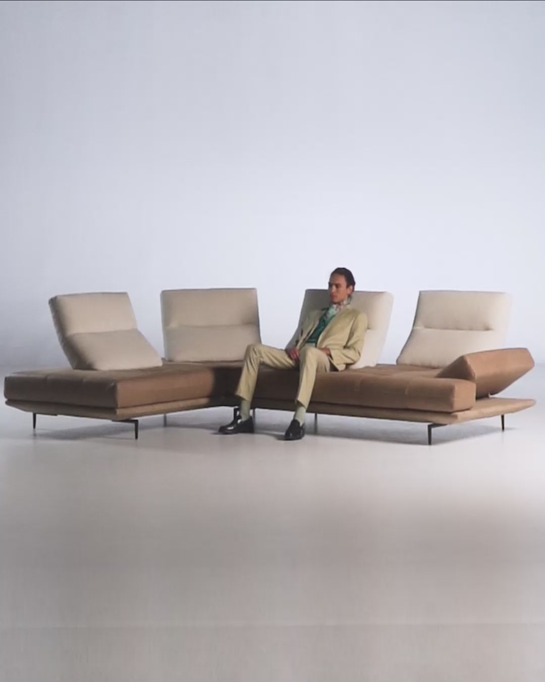 Manually adjustable seat depth with a total depth of 150 cm when backrests are positioned outward (189 cm for chaise long versions, 133 cm for BS3).
