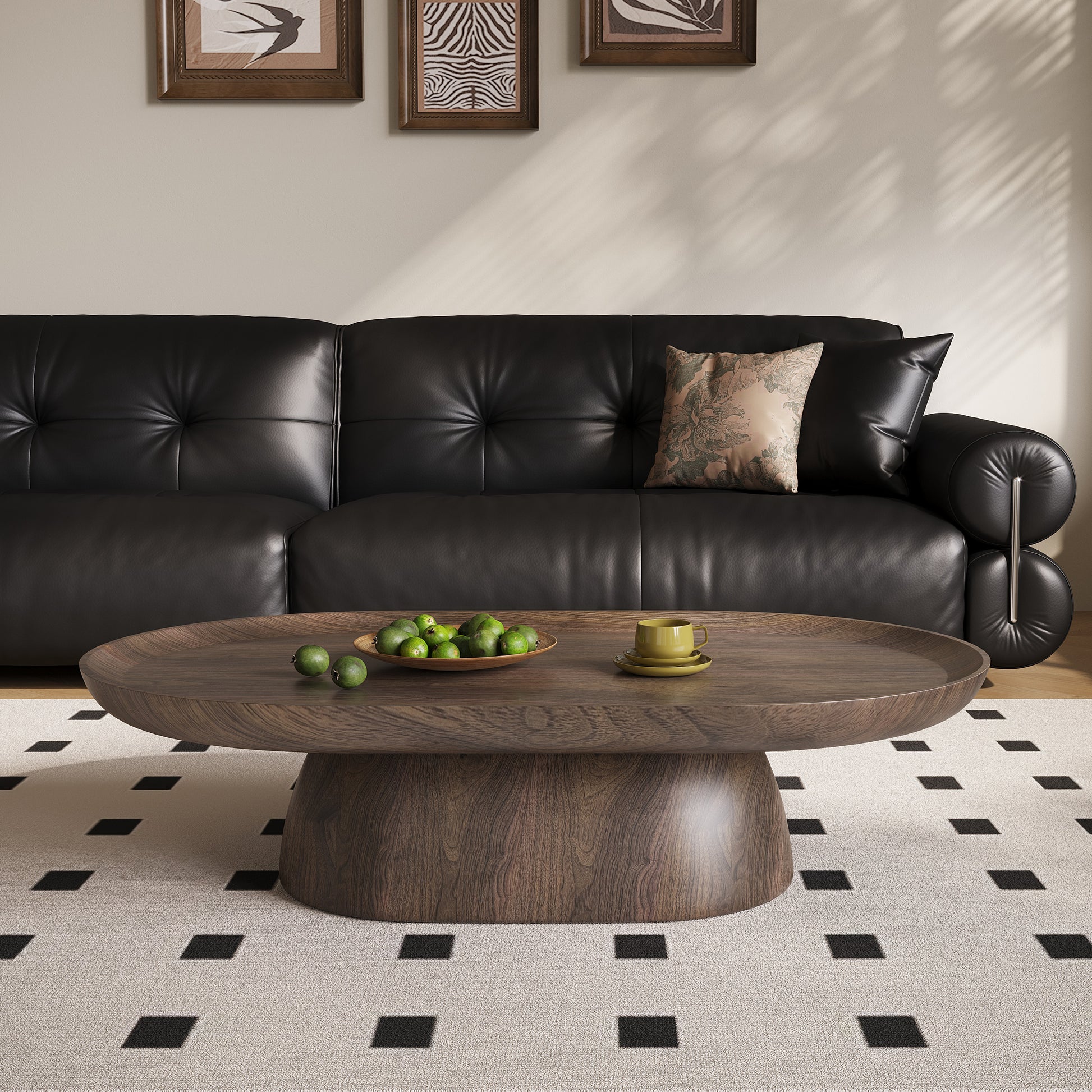 The Brigid coffee table is a masterpiece of organic design, featuring a fluid, elliptical walnut top that appears to float gracefully above a solid, tapering base. Its clean lines and natural timber aesthetic create a sense of refined, understated luxury, while its balanced proportions and warm tones bring a refined lightness that effortlessly grounds a modern living space.