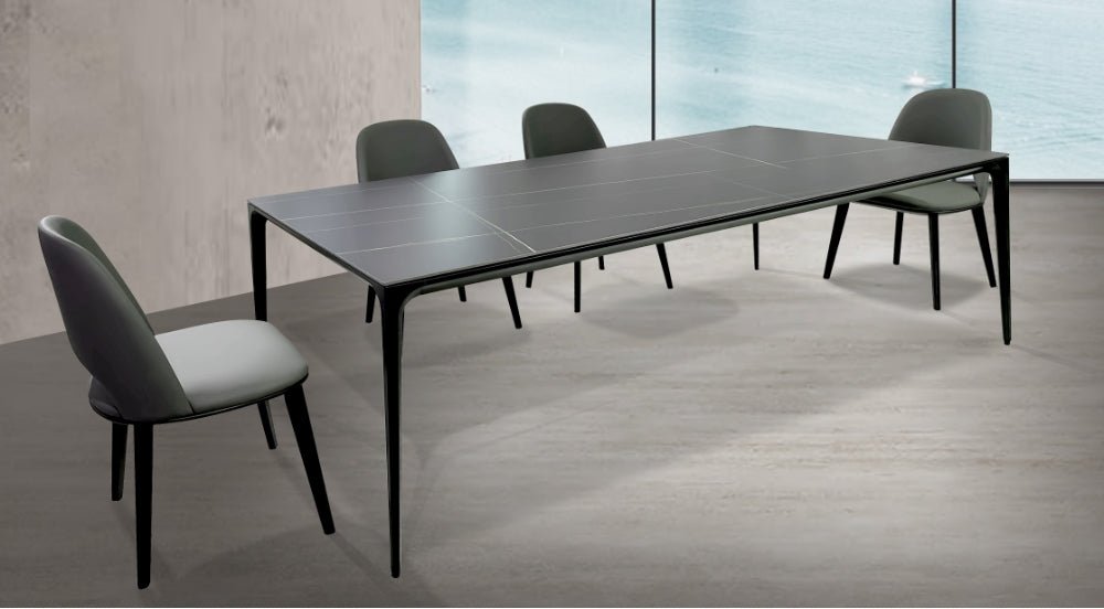 With its open and luxurious aesthetic, Derecho dining table serves as a refined and distinctive focal point for any living room. Its pyramid-shaped legs create an illusion of the table gently floating in mid-air, adding a touch of artistry to your space.