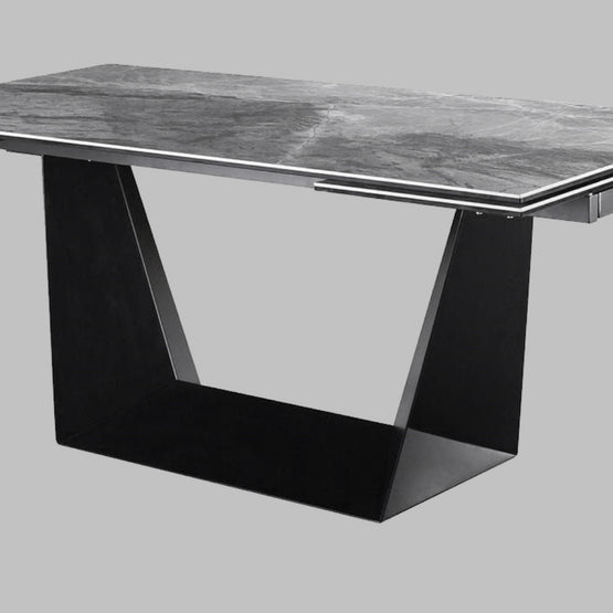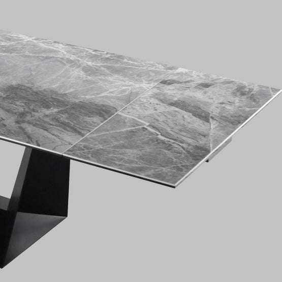 The tabletop is meticulously crafted from a premium ceramic stone, boasting a host of exceptional properties. It is highly resistant to heat, moisture, and scratches, ensuring remarkable durability. Furthermore, this sophisticated surface is effortlessly easy to clean and maintain, combining practical function with unparalleled beauty.
