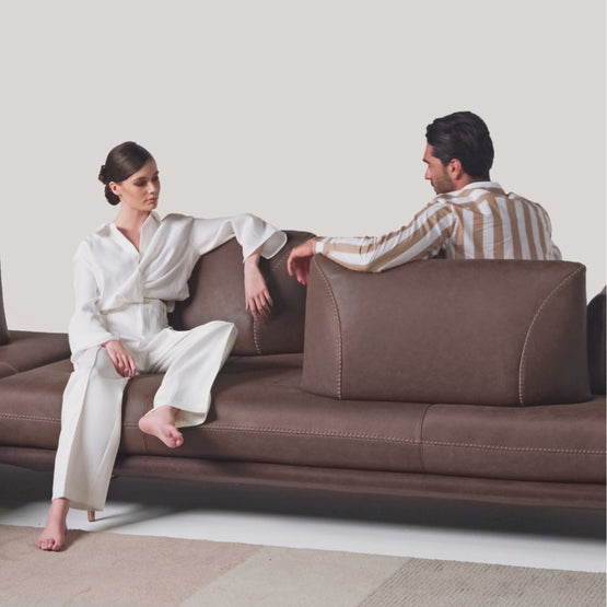 Inspired by the modernist aesthetic & lifestyle, the Gianduioto sofa is a captivating blend of modern minimalism and understated elegance. Its unique backrest, deviating from the traditional rectangular shape, creates a visually intriguing focal point. When pairing with a luxurious coffee table, the Gianduioto sofa transforms your living space into a serene and inviting retreat.