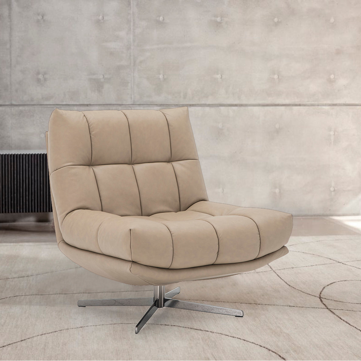 The chair swivels 360 degrees, making it perfect for living rooms and relaxation areas.