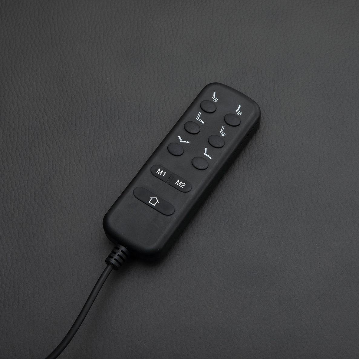 Backrest: Power-adjustable with zero-gravity recline, generously padded with eco-friendly polyurethane foam and feathers.