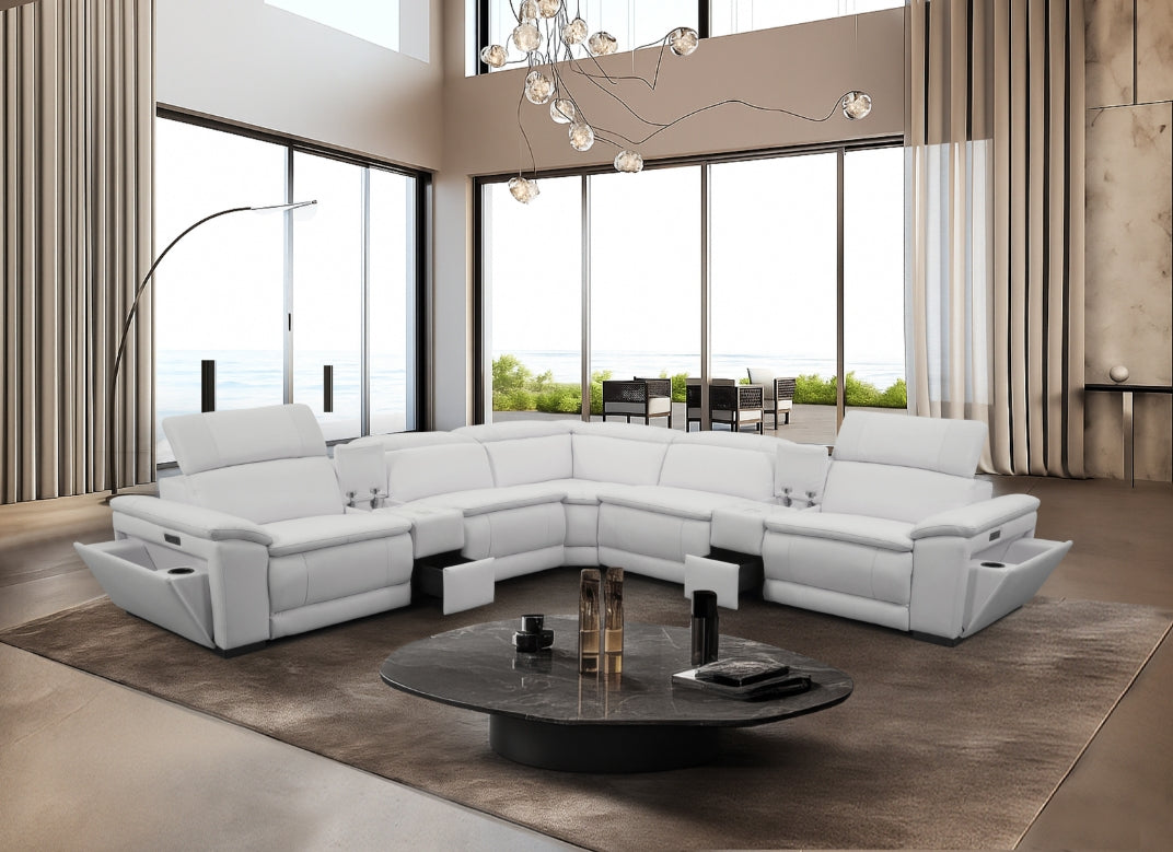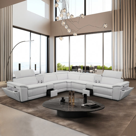 With its bold form and precise contours, Jenyfer epitomizes modern design. The ample, gently curved cushions ensure robust support, complemented by a flexible headrest that fluidly connects to the segmented backrest, striking a harmonious balance between utility and aesthetics. Thoughtfully integrated features like an electronic control panel, cup holders, discreet storage, and a central stone console deliver maximum convenience without compromising the sofa's refined symmetry.