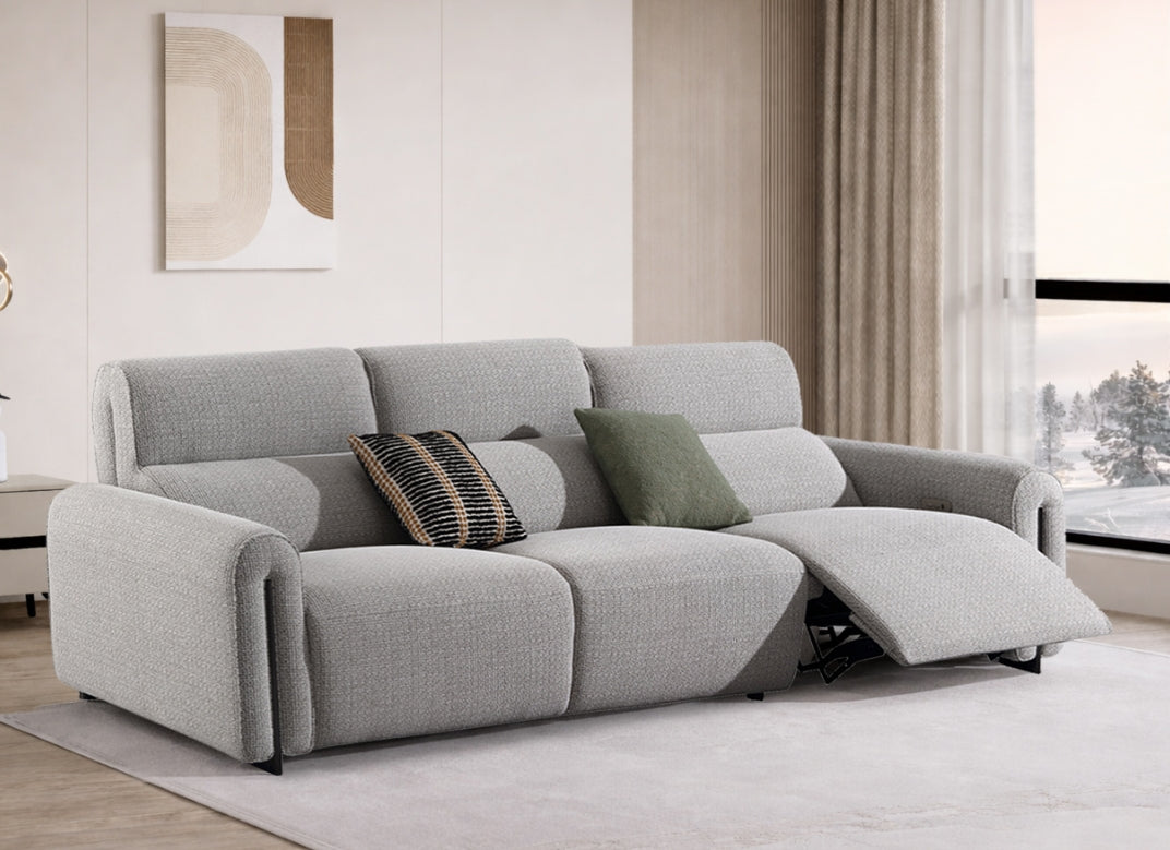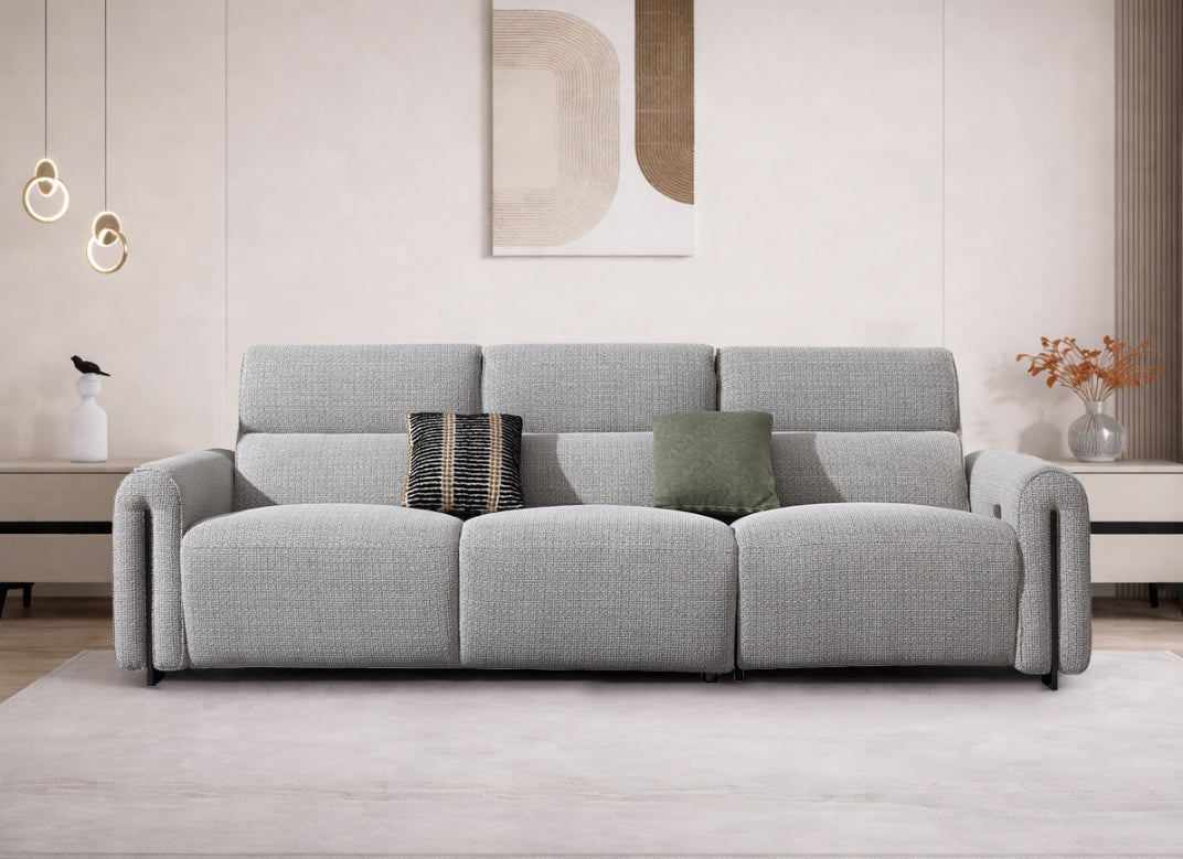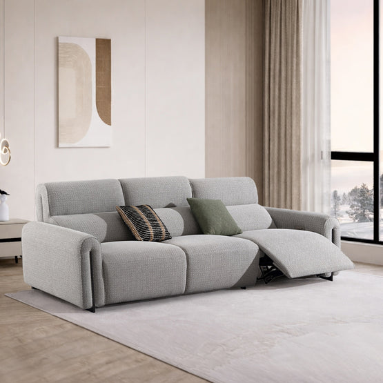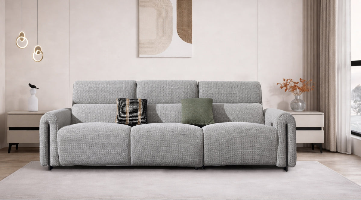 The Marvie sofa embodies modern elegance through its refined reclining form and balanced, inviting proportions. Sumptuous textured fabric drapes over generously padded cushions that cradle the body in deep, yielding comfort, while the discreet power-recline feature extends a supportive footrest, framed by gently sloping arms and a low, architectural plinth that lends quiet poise to any living space. Marvie elevates everyday repose into a seamless blend of sophisticated ease and lasting refinement.