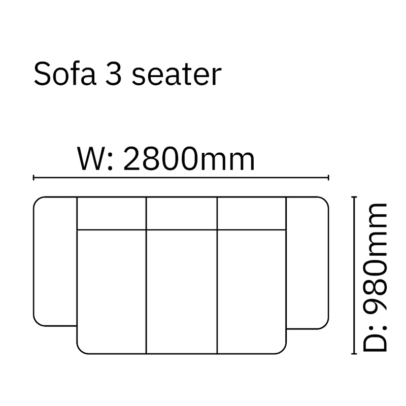 The Narciso 3 seater sofa has a spacious and comfortable seat, with a moderately high slim armrest.