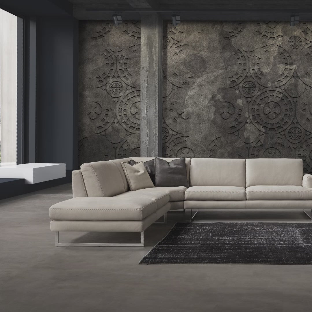 The Narciso L-shape sofa has a spacious and comfortable seat, with a moderately high slim armrest.