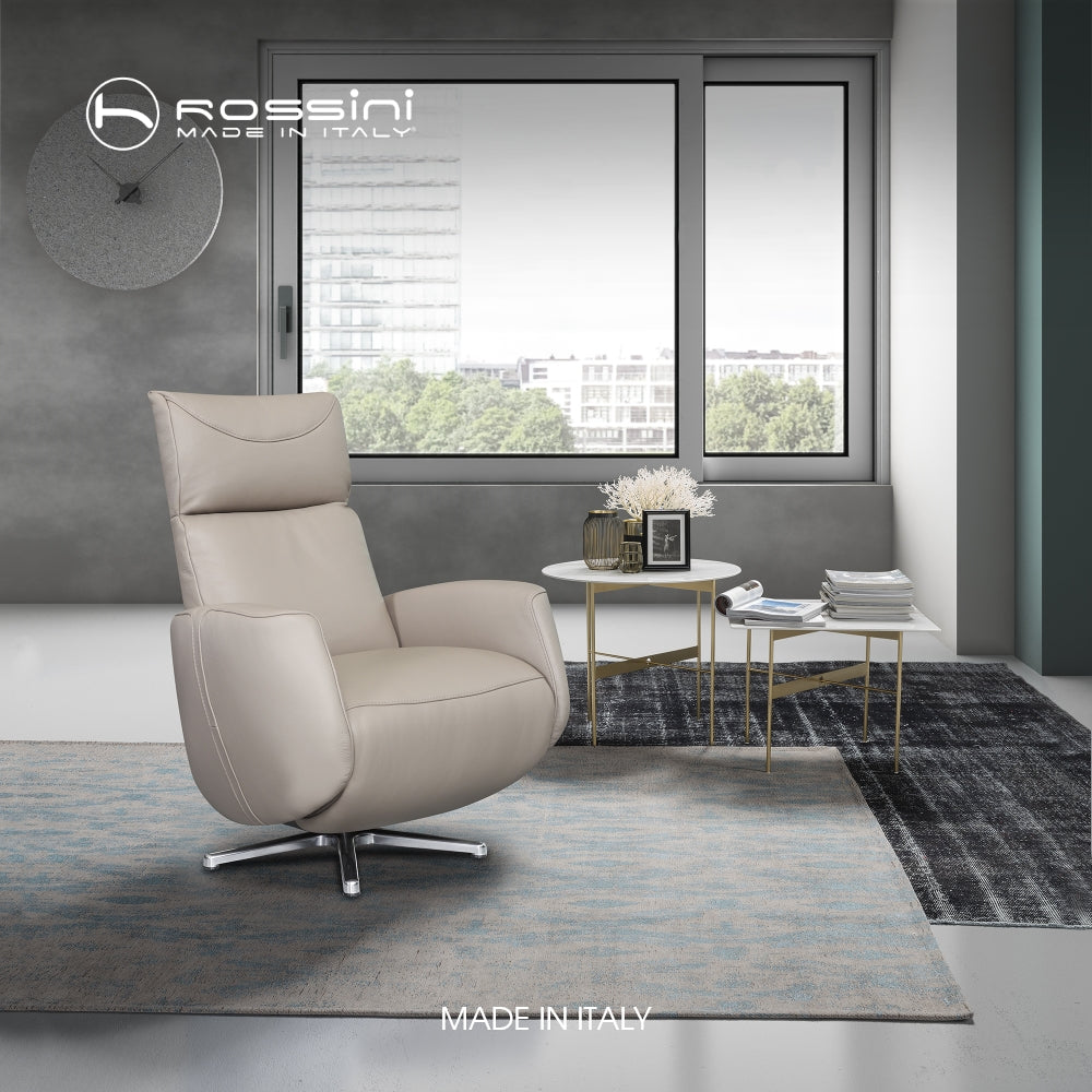 Lincoln is a recliner occasional chair with a star shaped base in polished steel, headrest and comfortable seat, and a hidden footrest in the recliner version. Perfect as a reading corners or in offices environment.