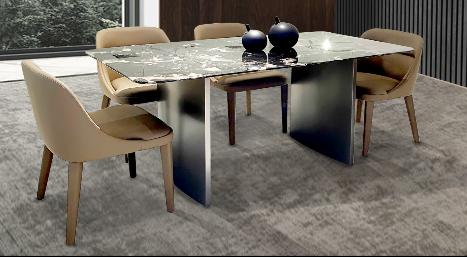 The Vivant dining table offers a minimalist yet sophisticated dining experience, thanks to its carefully selected materials, practical design, and harmonious color scheme that elevate the presentation of food and decor.